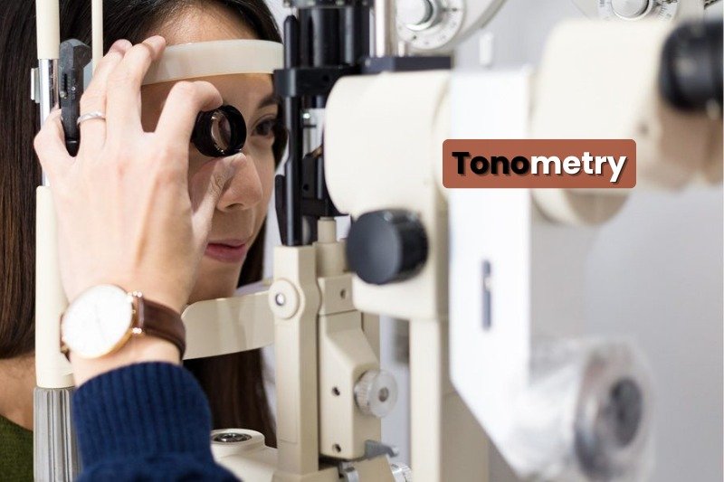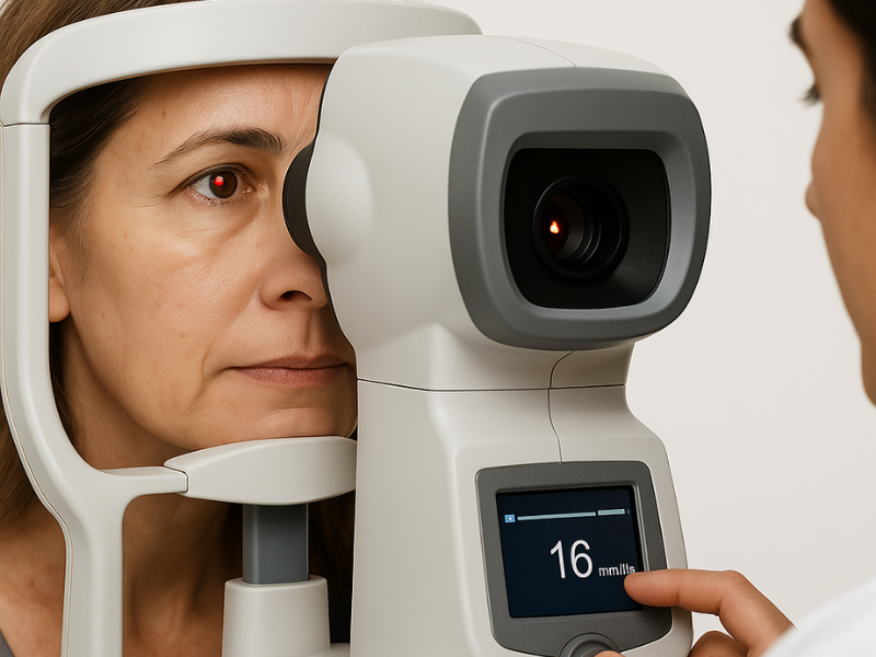 Measures intraocular pressure using gentle air puff or probe. Elevated pressure may indicate glaucoma risk, especially when combined with other diagnostic findings.
