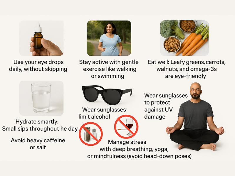 Manage stress with deep breathing, yoga, or mindfulness (avoid head-down poses)