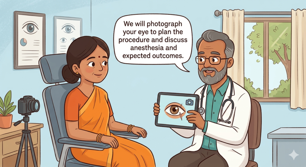 • The surgeon will explain the procedure, the type of anesthesia, and the expected outcomes.