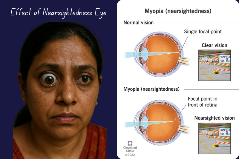 Extreme myopia stretches the eyeball, thinning the retina and increasing the risk of tears, holes, and detachment that can severely impact vision quality.