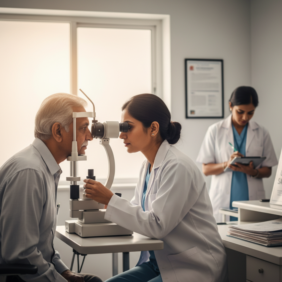 Assesses eye alignment, muscle strength, and movement to detect strabismus (squint), helping plan timely treatment like glasses, patching, or surgery if needed.